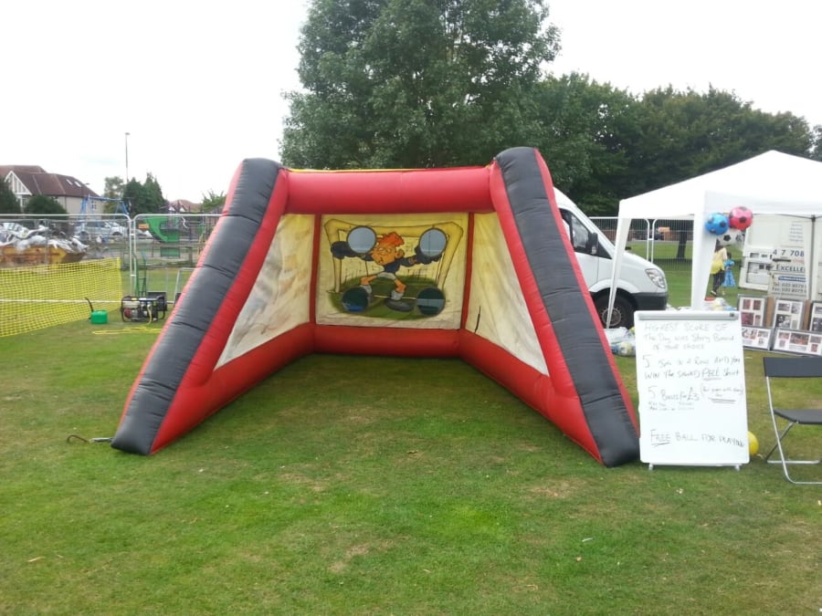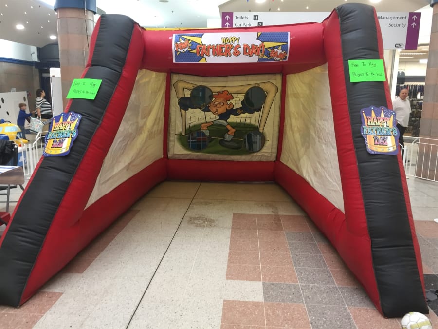 This football themed game is an inflatable goal with four target circle cut-outs for the kicker to try and kick the ball through a fantastic football game for all ages as well as any budding football stars, can be hired individually or as part of a package we can put together for a football themed party or event.