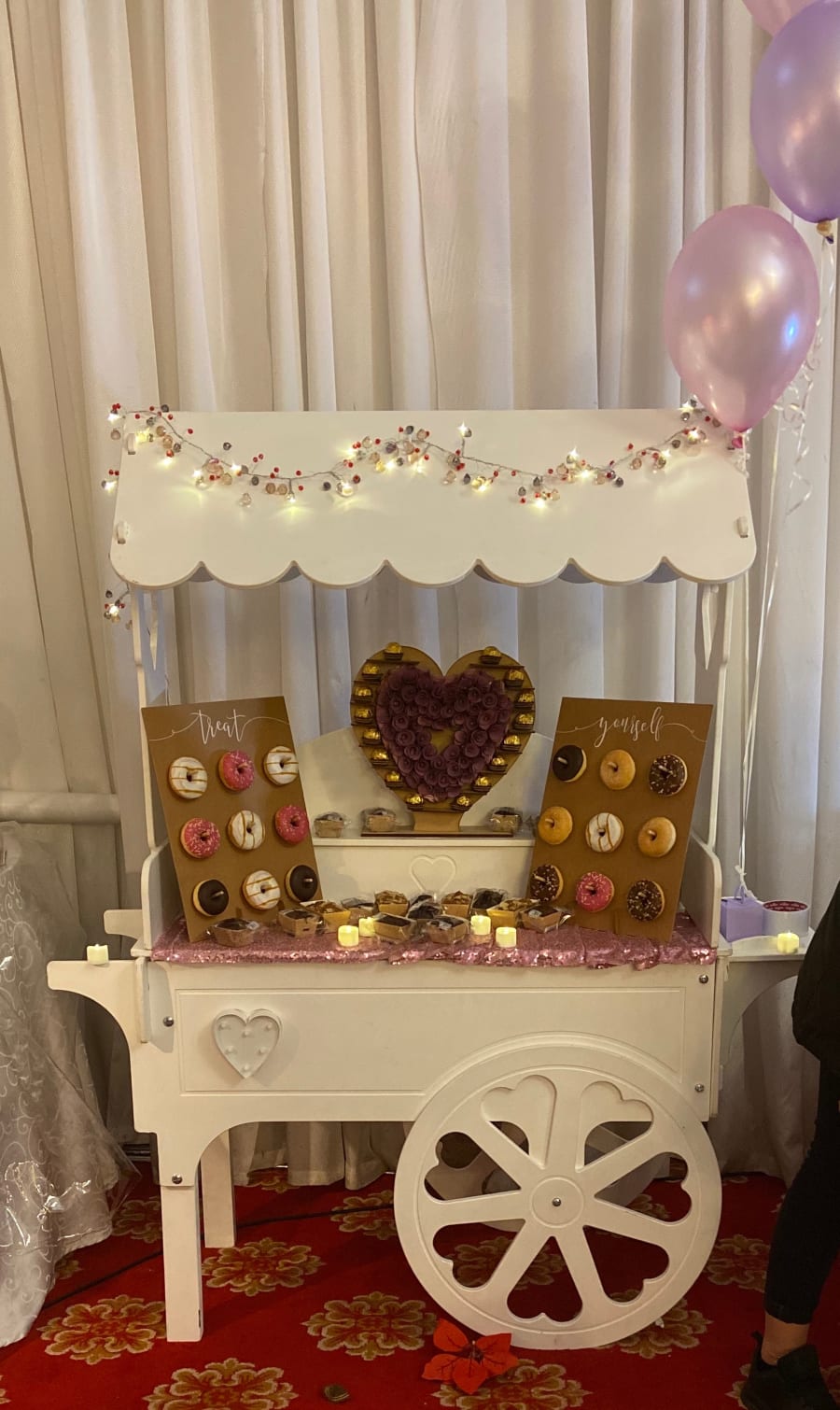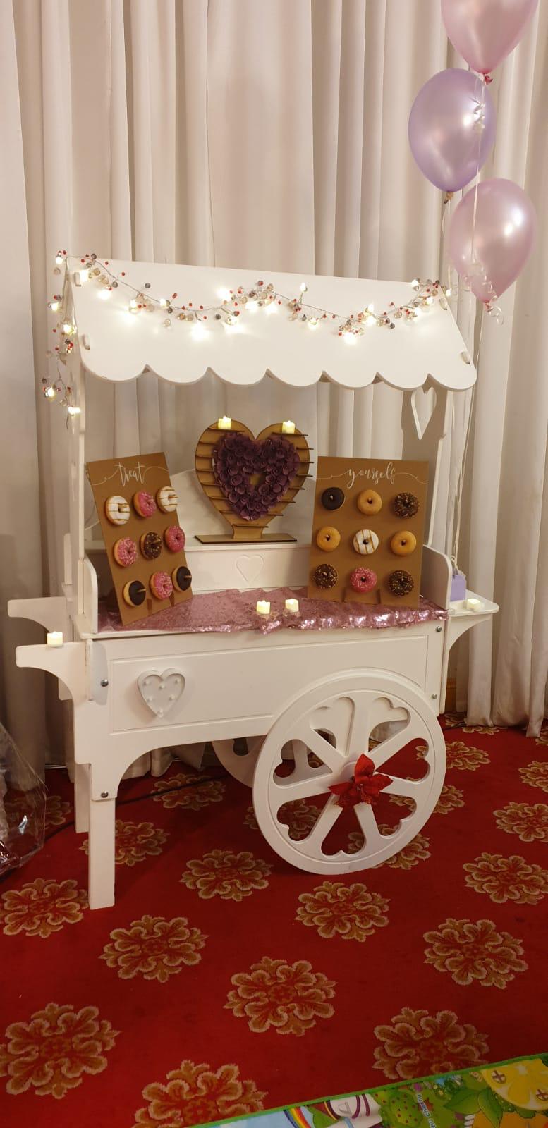 Not just candy/sweets you can hie the beautiful white cart and make it a Cupcake cart or a Processo cart or even a Gin & Tonic cart.